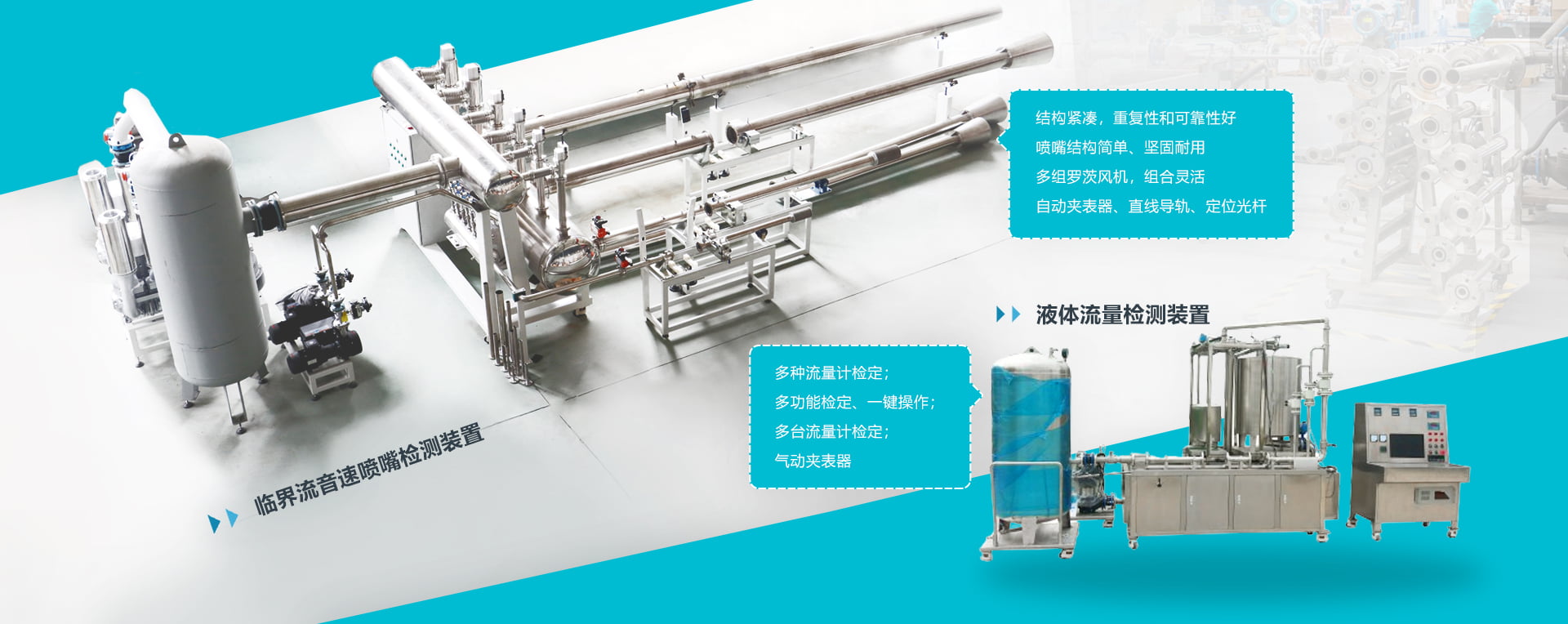臨界流音速噴嘴標(biāo)定裝置是我公司自主設(shè)計(jì)制造,它選用符合國際標(biāo)準(zhǔn)ISO9300《臨界流文丘里噴嘴測(cè)量氣體流量》的臨界流文丘里噴嘴作為標(biāo)準(zhǔn)流量計(jì),音速噴嘴標(biāo)定裝置采用標(biāo)準(zhǔn)表法進(jìn)行流量檢定或測(cè)試。